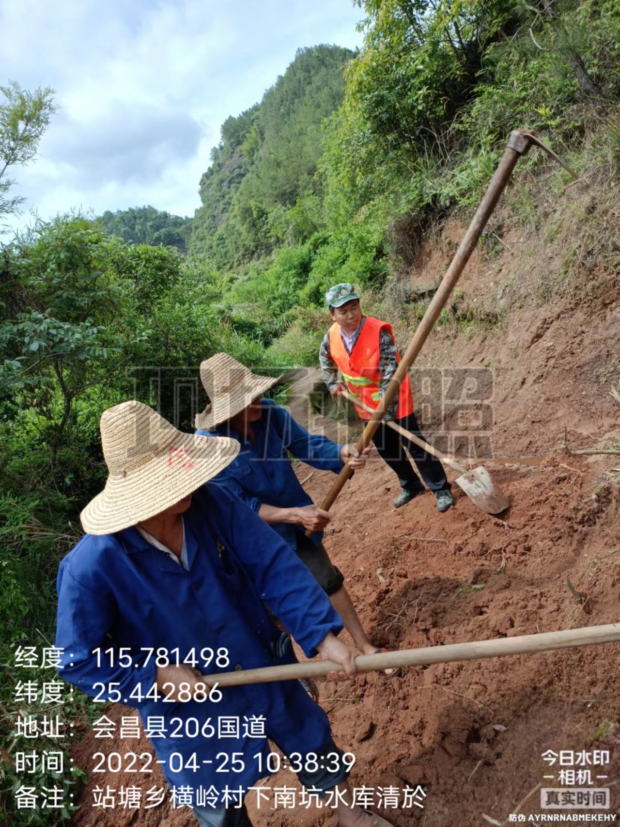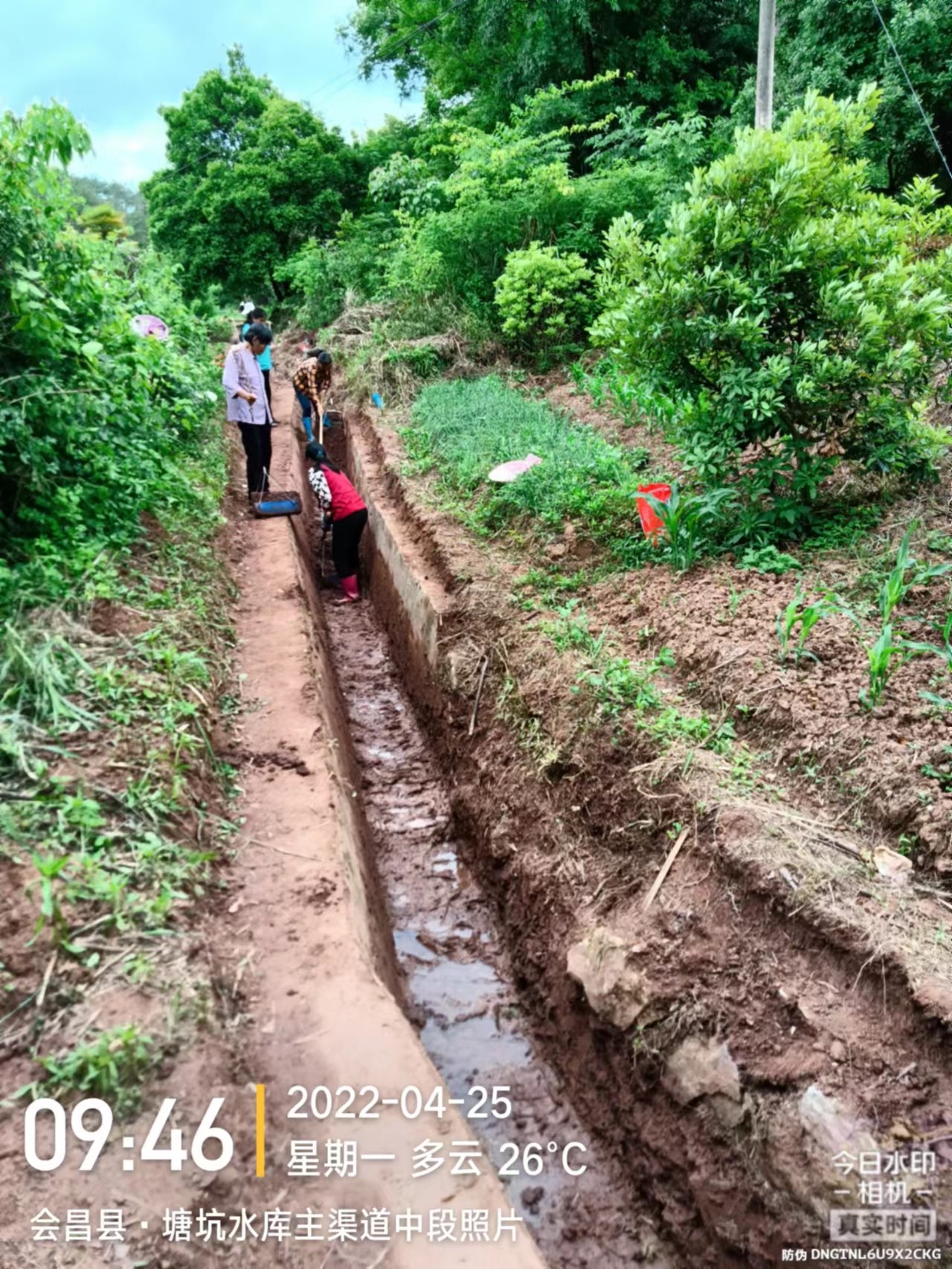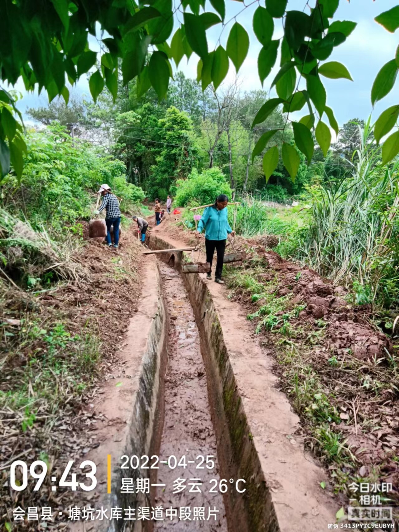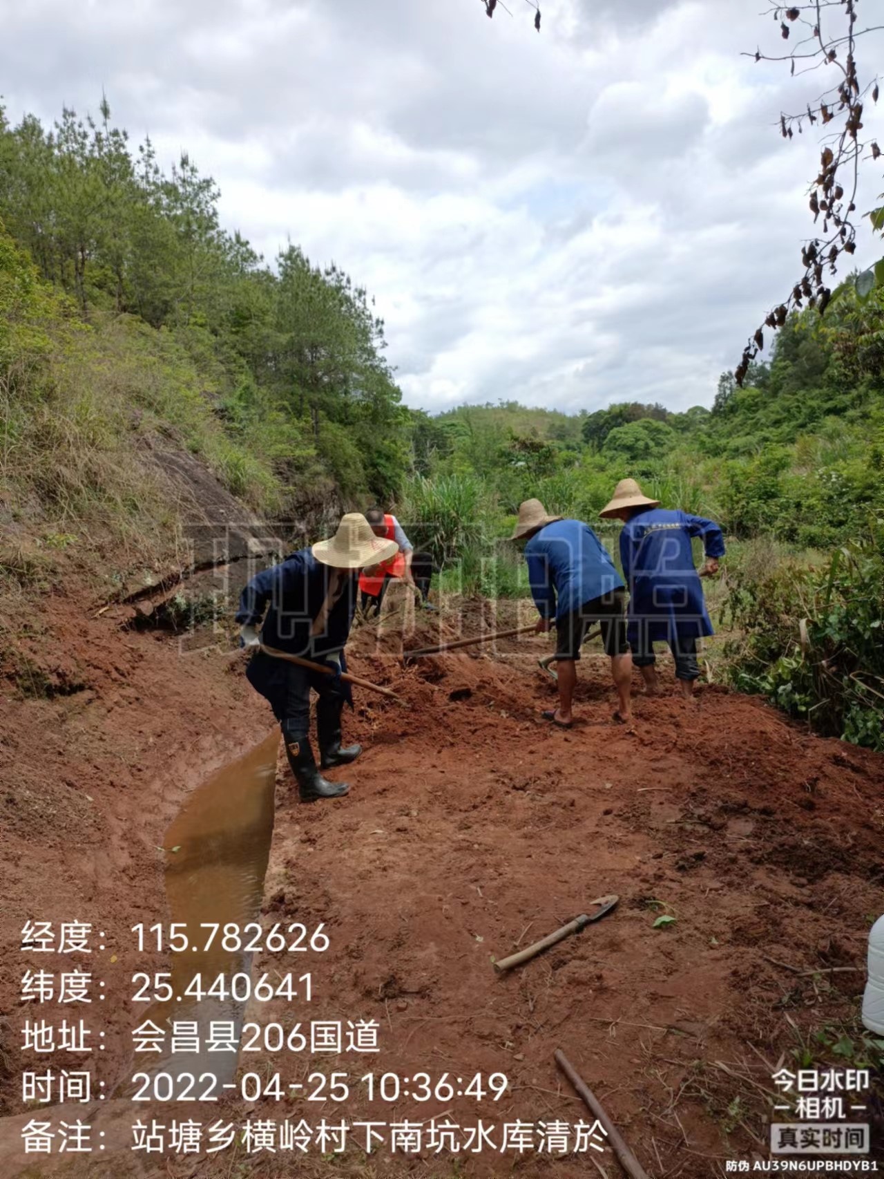 清理横岭村下南坑水渠严重淤塞,水渠督查员现场指导横岭村下南坑水渠修复